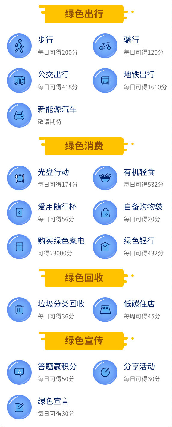 碳中和,即以相应的措施来抵消某个活动所产生的碳排放,近年来作为一种新型的环保方式,受到越来越多的国际大会和体育赛事的青睐。“低碳军运”小程序通过科学的碳积分算法,将用户各项低碳活动的减排贡献进行量化。用户捐赠减排量,即可获得碳积分,碳积分可用于兑换军运会的特色礼品或电子优惠券。所有减排量汇总后会捐赠给军运会执委会,用于抵消因办赛产生的二氧化碳排放。这样探索通过个人碳积分,进行大型体育赛事碳中和的方式为国内首创!