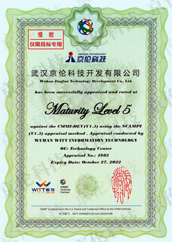 CMMI分5个等级,CMMI?5级作为CMMI体系的最高等级,公司通过该级别评估认证,标志着公司在过程组织能力、软件技术研发能力、项目管理能力、方案交付能力等方面提升到了一个新的高度,达到了优化管理级的国际先进水平。