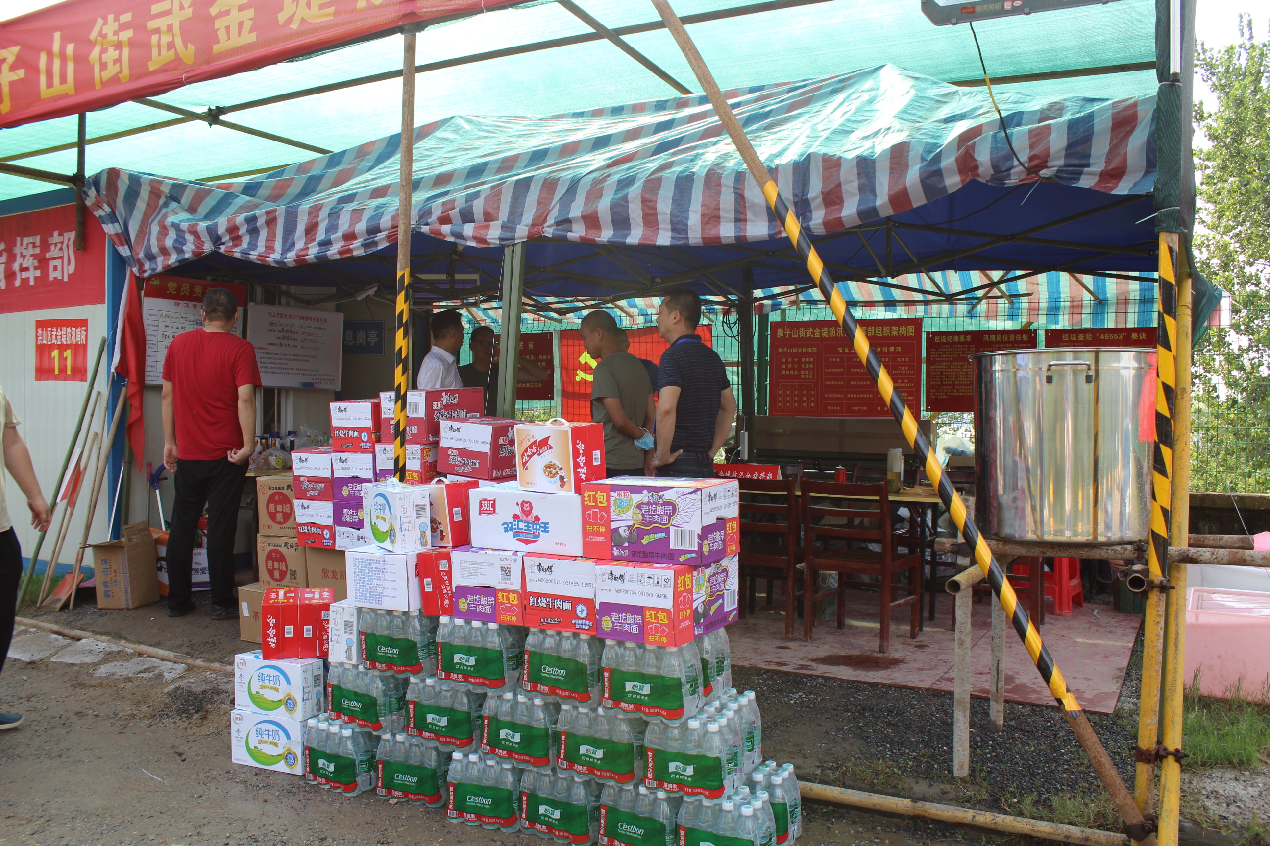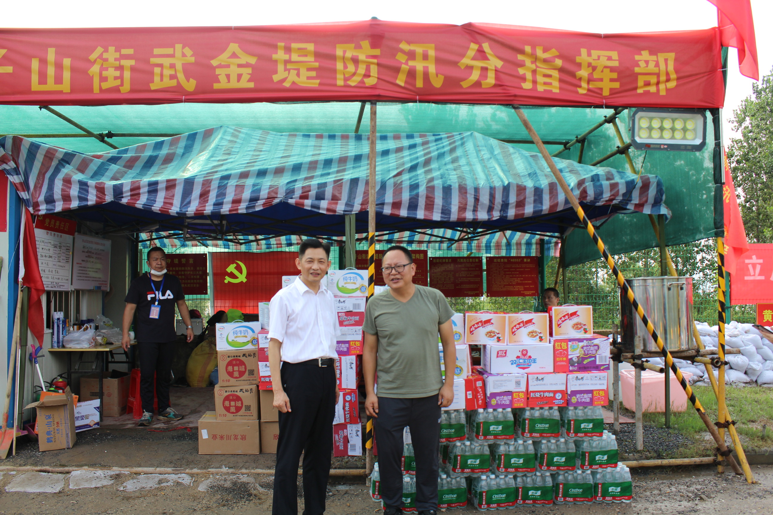 7月28日,365beat集团一行在董事长方总的带领下,将爱心牛奶、方便面、火腿肠、八宝粥、酸梅膏、矿泉水等物资送到了位于洪山区武金堤防汛第一线,对一线防汛人员表示深深地感谢,希望他们保重身体、注意安全,夺取防汛抗洪全面胜利!